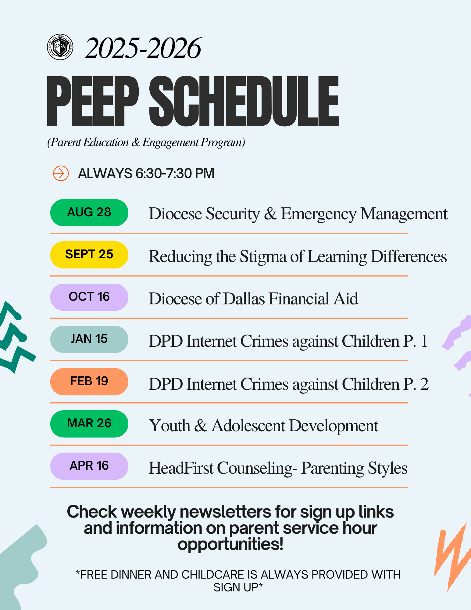 - Opportunities to connect, share, and build lasting relationships with other parents